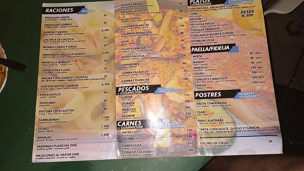 Bar-Restaurante Gorbea in Santa Pola is a true reflection of authentic Spanish dining. Their menu offers a wonderful selection of traditional dishes and generous tapas that capture the essence of local flavors. The midday menú del día stands out, featuring two starters and two main courses for just 12€, making it an excellent choice for a hearty, affordable meal. Whether opting for the well-portioned raciones like fresh salad, tender sepia, crispy empanadillas, or the classic pescaíto frito, every bite reveals quality ingredients and care in preparation.